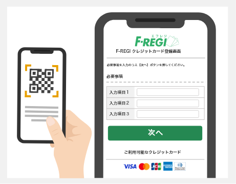 事業者様専用の決済画面(QRコード)を提供致しますので、