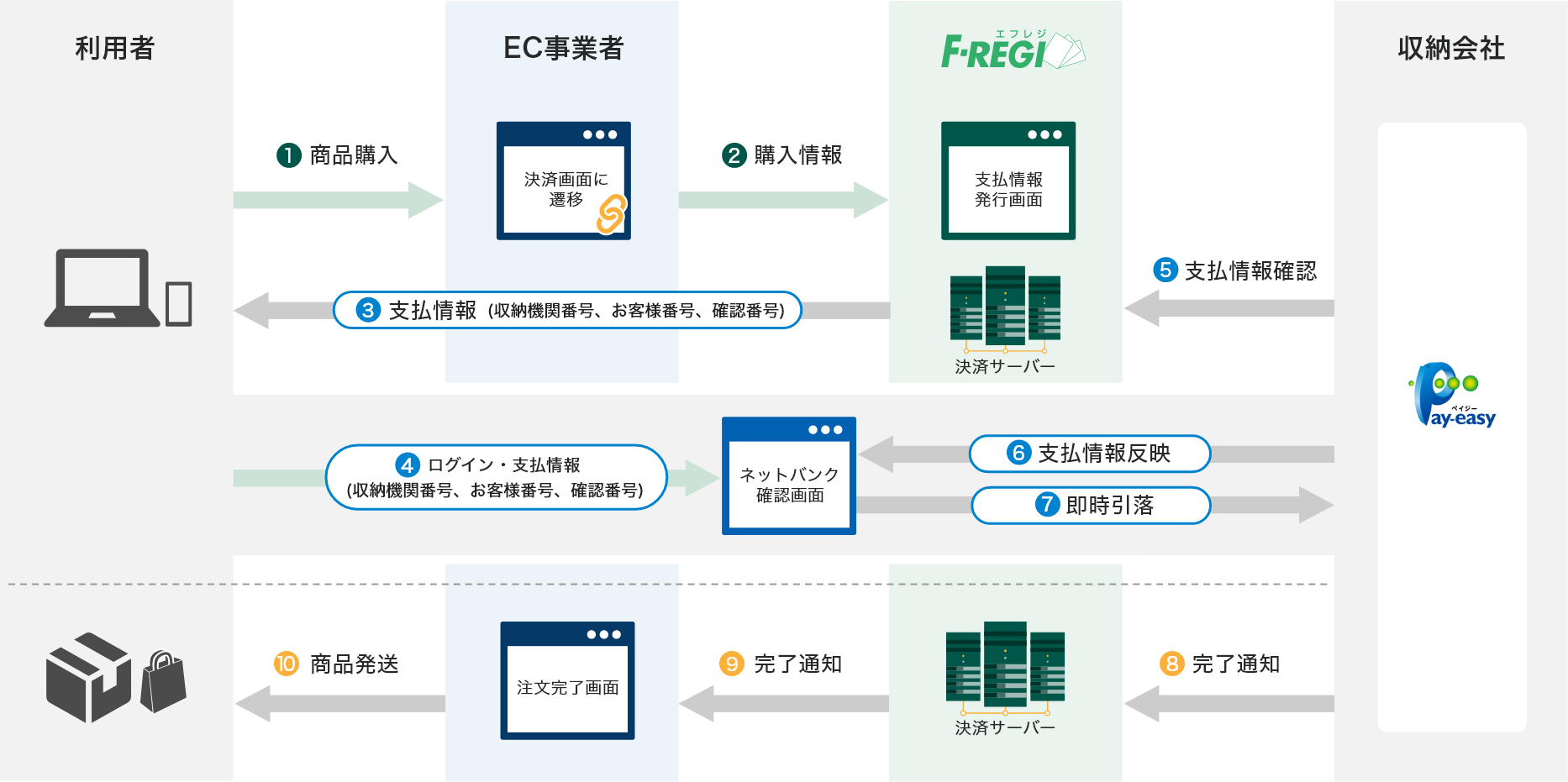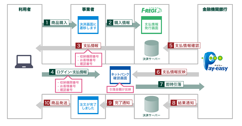申込受付サイトから直接ネットバンクと連携して支払う方式です。接続方法により決済フローが異なります。